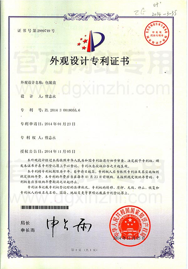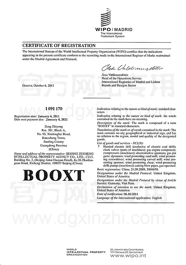 • 國(guó)際知識(shí)產(chǎn)權(quán)組織(WIPO)認(rèn)證證書